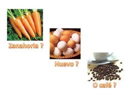 La hija esperó impacientemente, preguntándose qué estaría haciendo su padre. A los 20 minutos el padre apagó el fuego. Sacó los huevos y los colocó en un recipiente, sacó las zanahorias y las puso en un plato y finalmente, colocó el café en un tazón. Mirando a su hija le dijo: Querida ¿Qué ves? “ Huevos, zanahorias y café” fue su respuesta.